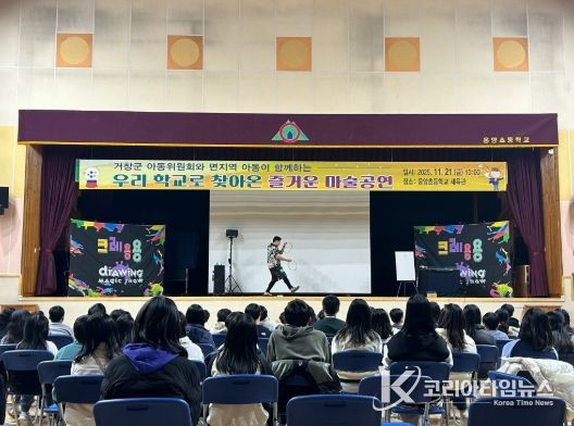 코리아타임뉴스 오영주 기자 | 거창군 아동위원회가 주관하는 ‘지역 아동과 함께하는 찾아가는 공연’이 지난 11월 21일 웅양초등학교 체육관에서 개최되어 큰 호응을 얻었다.