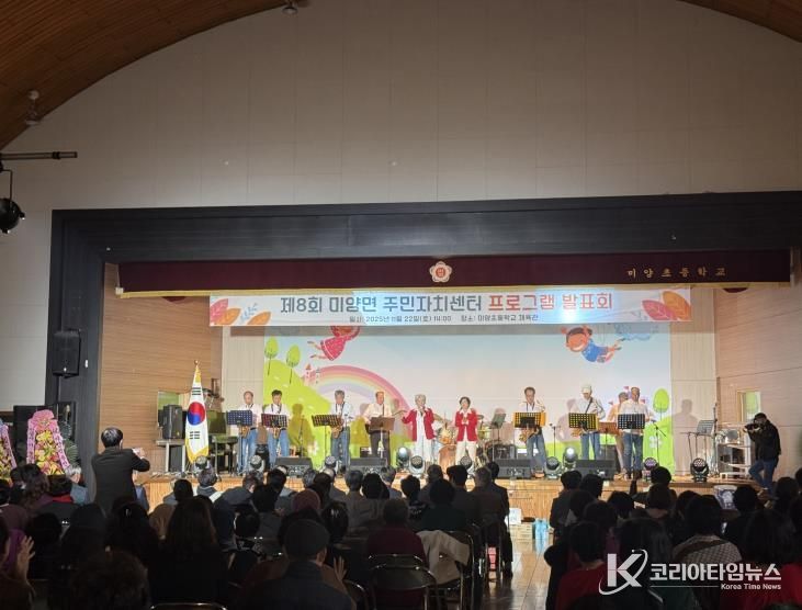 코리아타임뉴스 경기취재본부 | 지난 22일 미양초등학교 체육관에서 주민자치 프로그램 수강생, 기관·사회단체장, 주민 등 200여명이 참석한 가운데, 제8회 미양면 주민자치센터 프로그램 발표회가 개최됐다.