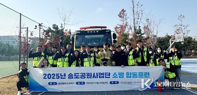 코리아타임뉴스 김태훈 기자 | 인천시설공단 송도공원사업단은 지난 20일 송도 글로벌파크 4지구 공원 내에서 송도소방서(미래119안전센터)와 소방 합동훈련을 실시했다.