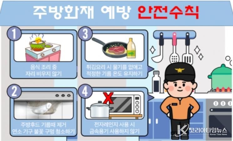 이에 소방서는 조리 중 자리를 절대 비우지 말고, 튀김류 조리 시에는 온도를 수시로 확인하며 화재 발생에 대비해 덮을 수 있는 뚜껑이나 소화기·K급 소화기를 가까이 비치할 것을 강조했다.