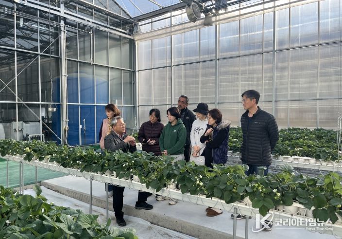 코리아타임뉴스 경북취재본부 | 봉화군 내년 1월 봉성면 창평리 임대형 스마트팜단지 입주를 앞두고 딸기팀 9명과 토마토팀 9명 등 18명을 대상으로 마지막 실습교육에 박차를 가하고 있다.