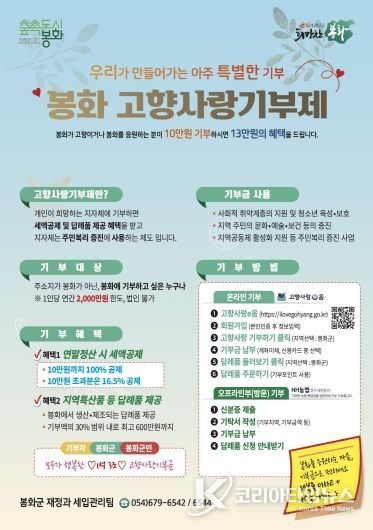 박현국 봉화군수는 “3년 연속 고향사랑기부금을 보내주신 권석형 대표님께 깊은 감사의 말씀을 드린다”며, “기탁금은 사회취약계층 지원과 군민 복지 향상을 위해 소중하게 사용하겠다”고 말했다.