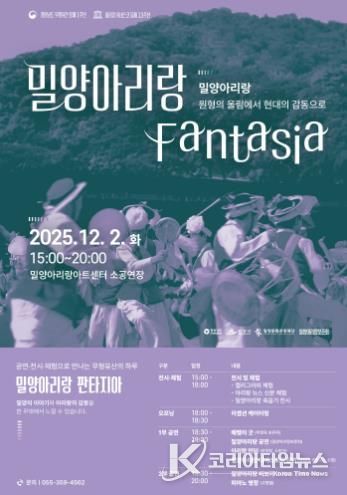 코리아타임뉴스 오영주 기자 | 경남 밀양시는 오는 12월 2일 오후 3시부터 8시까지 밀양아리랑아트센터 소공연장과 전수관에서 ‘2025 밀양아리랑 판타지아’를 개최한다.