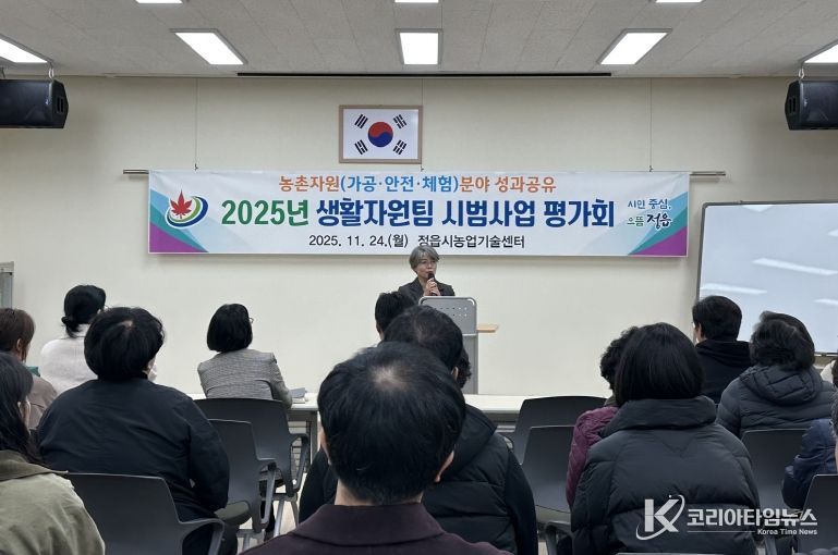 코리아타임뉴스 김태훈 기자 | 정읍시농업기술센터가 지난 24일 ‘2025년 생활자원분야 시범사업 평가회’를 열고, 지역 농업인의 소득 증대와 생활환경 개선을 위해 추진한 사업들의 성과를 점검했다. 이날 평가회에서는 농식품 가공과 농작업 안전 등 총 11개 사업의 실적을 공유하고 향후 발전 방향을 모색했다.