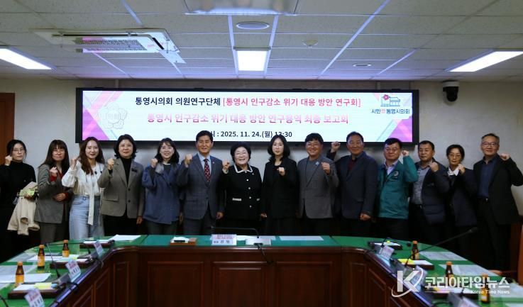 코리아타임뉴스 오영주 기자 | 통영시의회 의원연구단체 '통영시 인구감소 위기 대응 방안 연구회'는 지난 24일 통영시의회 특별위원회실에서‘통영시 인구감소 위기 대응 방안 연구용역’에 대한 최종보고회를 개최했다.