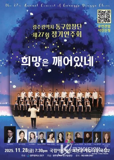 코리아타임뉴스 노승선 기자 | 광주 동구는 동구합창단이 오는 28일 오후 7시 30분 국립아시아문화전당 예술극장 극장2에서 ‘제27회 정기연주회 희망은 깨어있네(Hope is Awake)’를 개최한다고 밝혔다.