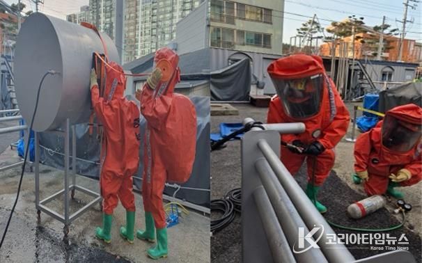 특히 실제 상황을 가정해 구조대원들이 화학사고 대응 장비를 직접 활용하여 누출 차단·제독·이송 절차를 반복 숙달하는 실전형 중심 훈련을 진행했다.