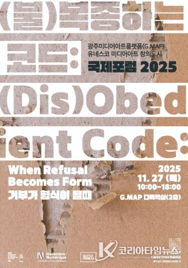 코리아타임뉴스 노승선 기자 | 광주광역시는 27일 광주미디어아트플랫폼(G.MAP)에서 ‘(불)복종하는 코드(Dis)Obedient Code)’ 국제포럼을 열고, 인공지능 시대 기술권력의 확장 속에서 예술·철학이 제시할 새로운 윤리와 대응 방안을 논의한다.