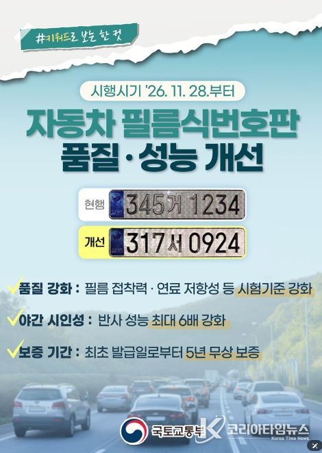 코리아타임뉴스 윤광희 기자 | 자동차 필름식 번호판 품질·성능 개선
