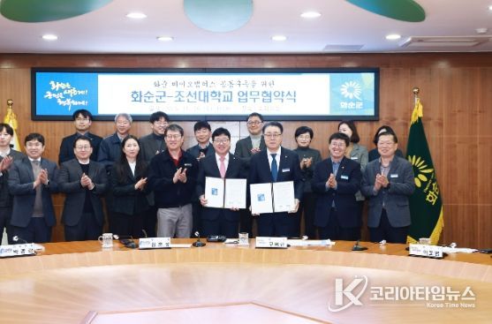 코리아타임뉴스 김태훈 기자 | 화순군은 26일 군청 소회의실에서 조선대학교(총장 김춘성)와 ‘화순 바이오캠퍼스 공동 구축을 위한 업무협약(MOU)’을 체결했다고 밝혔다.