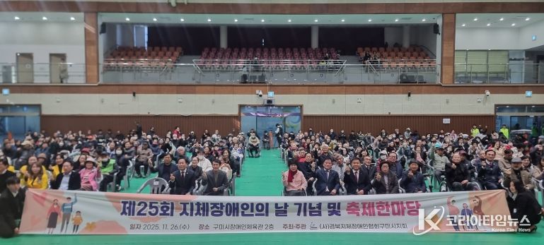 코리아타임뉴스 노승선 기자 | 구미시는 지난 26일 장애인체육관 경기장에서 (사)한국지체장애인협회경북협회 구미시지회(지회장 오광희) 주관으로 '제25회 지체장애인의 날 기념 및 축제한마당'을 성황리에 개최했다.