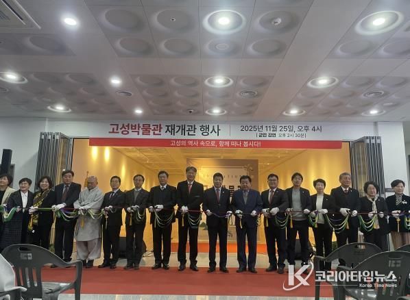 코리아타임뉴스 경남취재본부 | 고성군은 2025년 11월 25일, 고성박물관에서 리모델링 완료하고 재개관식을 성황리에 개최했다고 26일 밝혔다.