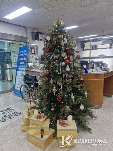 코리아타임뉴스 노승선 기자 | 군위군은 연말을 맞아 군민들에게 희망과 행복을 전달하기 위해 크리스마스트리를 민원실에 설치하고 12월31일까지 운영한다. 이번 크리스마스트리 장식은 민원봉사과 전 직원이 참여하여 민원실을 새롭게 단장해 방문객들에게 특별한 경험을 선사하고 있다.