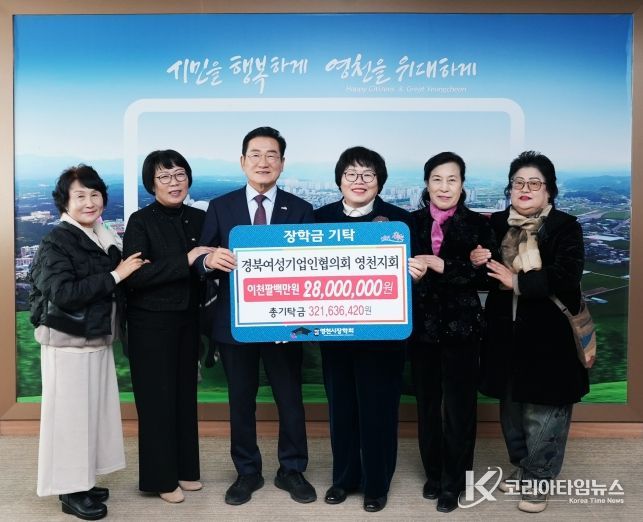27일 경북여성기업인협의회 영천지회 2,800만원, 영천시농식품가공협의회 500만원, 영천농산물도매시장㈜ 500만원, 임고면 평천1리 이장 김광식‧정현주 부부가 100만원의 장학금을 영천시장학회에 전달했다.