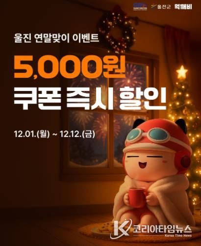 코리아타임뉴스 경북취재본부 | 울진군은 12월 1일부터 소상공인들의 배달 수수료 부담 완화와 지역경제 활성화를 도모하기 위해 공공배달앱‘먹깨비’할인 이벤트’를 진행한다.