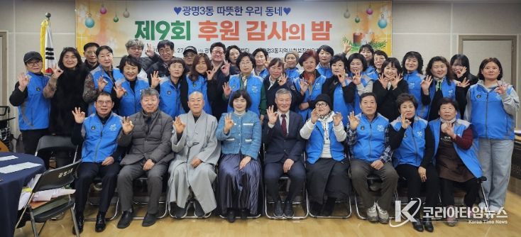 코리아타임뉴스 경기취재본부 | 광명시 광명3동 지역사회보장협의체는 지난 27일 ‘제9회 후원감사의 밤’을 열고 한 해 동안 광명3동 복지를 위해 나눔을 실천한 후원자와 지역 단체 등 100여 명을 초청해 감사의 마음을 전했다.