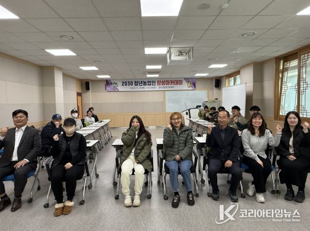 코리아타임뉴스 경북취재본부 | 성주군 농업기술센터는 11월 27일, 지역 청년농업인 17명이 참석한 가운데 실무 중심의 교육과정인 ‘2030 청년농업인 양성아카데미’개강식을 개최했다.