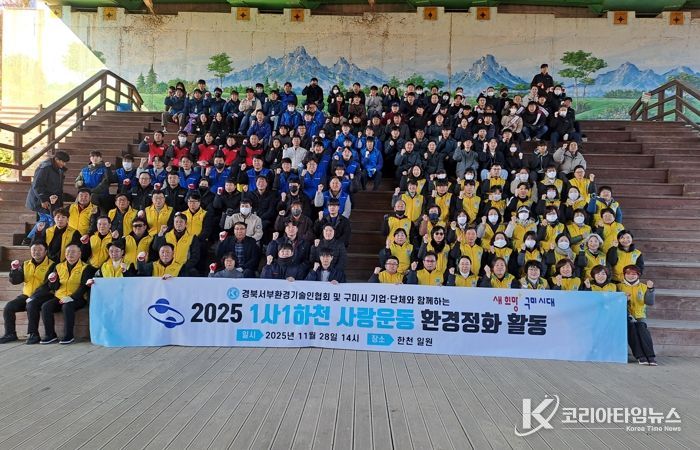 코리아타임뉴스 노승선 기자 | 구미시는 지난 28일 양포동 한천 일원에서 ‘2025년 1사1하천 사랑운동’의 일환으로 하천정화활동을 실시했다. 이번 활동에는 구미시가 주관하고 경북서부환경기술인협회 등 27개 기업과 민간단체 임직원 및 회원 등 160여 명이 참여했다.