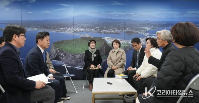코리아타임뉴스 노승선 기자 | 제주특별자치도는 제주평화인권헌장 제정과 관련해 2일(화) 도청 소통회의실에서 제주도민연대(대표 이향) 등 단체와 면담을 가졌다.