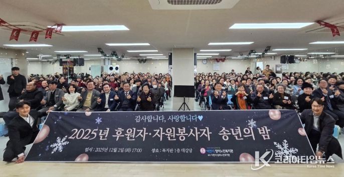 코리아타임뉴스 기동취재팀 | 이천시는 이천시 청미노인복지관이 지난 12월 2일, 올 한 해 복지관의 다양한 사업 운영에 함께해 준 후원자 및 자원봉사자를 초청해 ‘2025년 후원자‧자원봉사자 송년의 밤’ 행사를 성황리에 개최했다고 밝혔다.