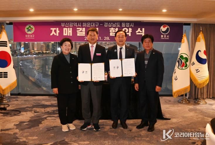 코리아타임뉴스 이아름 기자 | 해운대구는 지난 11월 28일, 해운대구에서 경상남도 통영시와 자매도시 결연 협약을 체결했다.