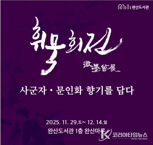 코리아타임뉴스 전북취재본부 | 전주시 완산도서관은 지난달 29일부터 오는 14일까지 2025년 한 해의 마지막 전시로 이명순 등 39인의 지역 작가가 참여한 단체전 ‘휘묵회전’을 진행하고 있다고 4일 밝혔다.