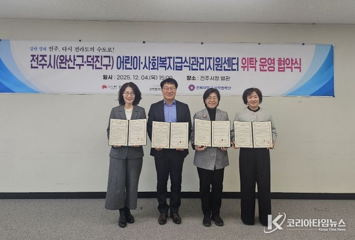 코리아타임뉴스 김태훈 기자 | 전주시는 4일 전주대학교 산학협력단, 전북대학교 산학협력단과 각각 ‘전주시 어린이·사회복지급식관리지원센터 위탁운영 협약’을 체결했다.