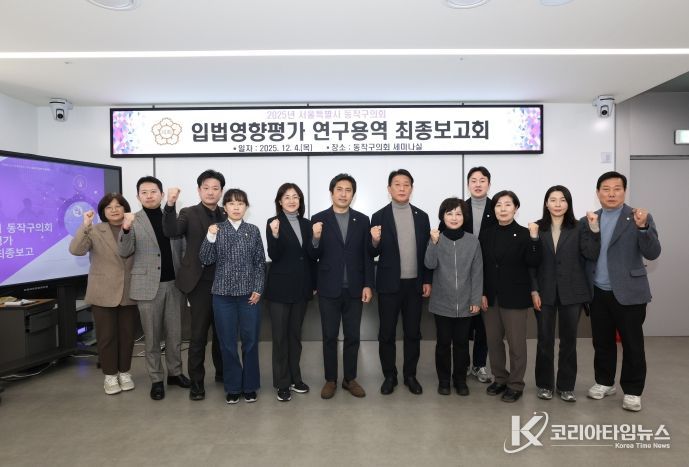 코리아타임뉴스 정치팀 | 동작구의회는 4일 의회 세미나실에서 ‘입법영향평가 연구용역 최종보고회’를 개최했다. 이번 보고회는 동작구 자치법규의 실효성을 높이기 위해 추진된 연구용역의 결과를 공유하기 위해 마련됐다.