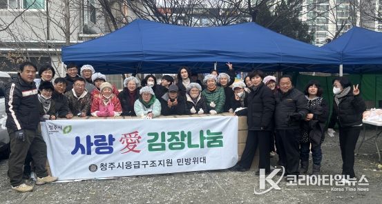 코리아타임뉴스 충북취재본부 | 청주시 응급구조지원민방위대(대장 한효동)는 지난 6일 서원구 분평동에 위치한 식당에서 겨울철 취약계층 지원을 위한 ‘사랑의 김장 나눔’ 봉사활동을 실시했다.
