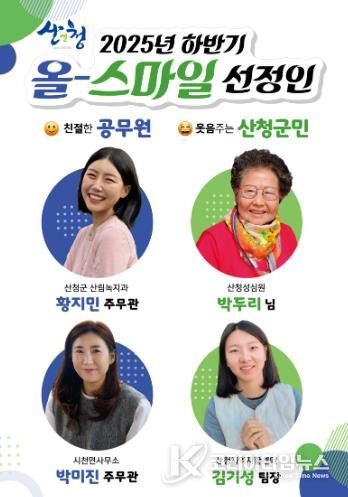 코리아타임뉴스 경남취재본부 | 산청군은 ‘2025년 하반기 올-스마일 민원 공무원과 군민’을 선발했다고 8일 밝혔다.
