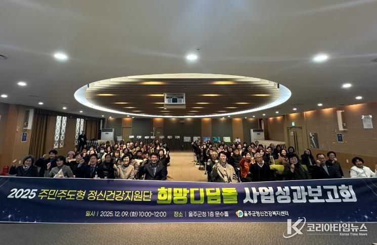 코리아타임뉴스 울산취재본부 | 울주군정신건강복지센터가 9일 군청 문수홀에서 희망디딤돌 위원 및 관계자, 지역주민 등 100여명이 참석한 가운데 2025년 주민주도형 정신건강지원단 ‘희망디딤돌’ 사업 성과보고회를 개최했다.