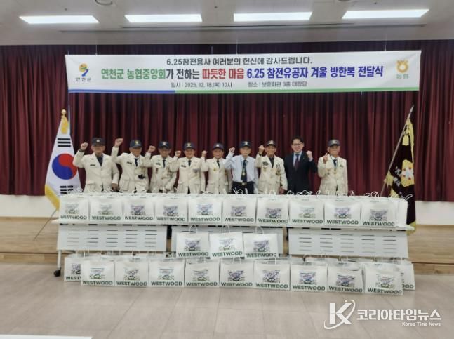 코리아타임뉴스 윤광희 기자 | NH농협 연천군지부는 18일 연천군 보훈회관에서 연천 관내 6.25 참전유공자에 감사와 사랑의 마음을 담은 600만원 상당의 위문품(동절기 방한복)을 전달했다.