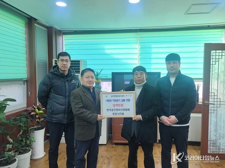 이날 기탁식에서 한국공간정보산업협회 포천시지회는 성금 100만 원을, 관인면5일장상인회는 라면 20박스(70만 원 상당)를 각각 후원하며 지역사회 나눔에 동참했다. 기탁된 성금과 물품은 관인면 내 취약가구에 전달될 예정이다.