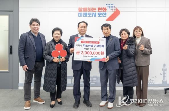 코리아타임뉴스 윤광희 기자 | 오산시는 지난 24일 따스아리 기부천사로부터 저소득 취약계층 지원을 위한 후원금 300만 원을 기탁받았다고 밝혔다.