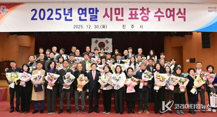 코리아타임뉴스 경남취재본부 | 진주시는 30일 시청 시민홀에서 지역사회 발전과 선행 활동을 몸소 실천하며 공동체의 귀감이 된 시민 98명을 대상으로 ‘2025년 연말 시민 표창 수여식’을 개최했다.