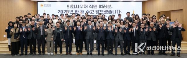 코리아타임뉴스 윤광희 기자 | 경기도의회 김진경 의장(더민주·시흥3)은 31일 도의회 대회의실에서 2025년 한 해를 마무리하는 의회사무처 종무식을 열고, 사무처 직원들에 대한 격려와 감사의 마음을 전했다.