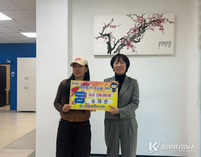코리아타임뉴스 경남취재본부 | 써니잡화점(대표 송미선)은 지난 1월 2일 동서금동 행정복지센터를 방문해 관내 독거노인 및 취약계층을 위한 이웃돕기 성금 20만 6천 원을 기탁했다.