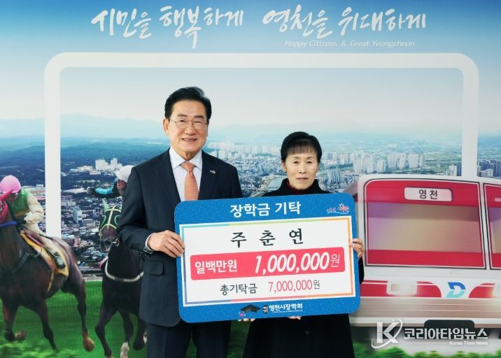 코리아타임뉴스 노승선 기자 | 영천시는 6일 주춘연 씨가 100만원, ㈜정우산업(대표 최종영)이 500만원, 덕유농장(대표 김금필)이 300만원, ㈜디에스건설안전이 200만원의 장학금을 영천시장학회에 기탁했다고 밝혔다.