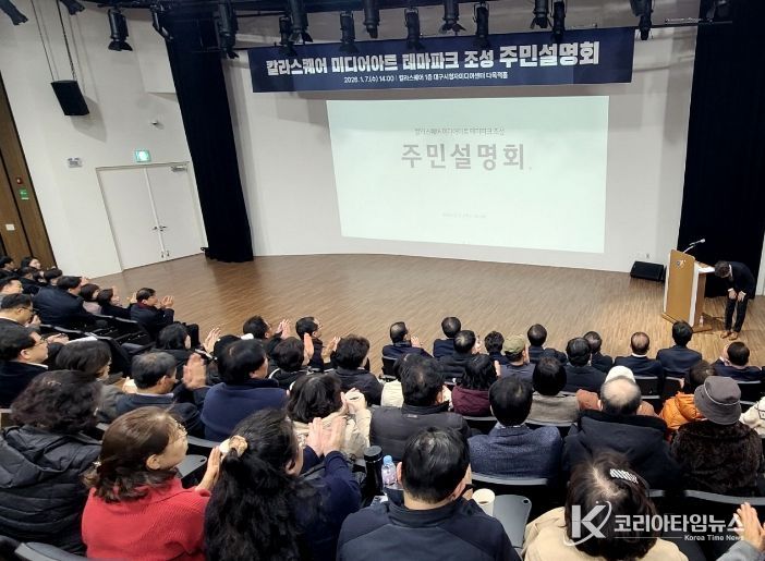 코리아타임뉴스 노승선 기자 | 대구 수성구는 7일 칼라스퀘어(대구스타디움몰) 내 시청자미디어센터 다목적홀에서 ‘칼라스퀘어 미디어아트 테마파크 조성 주민설명회’를 개최했다.