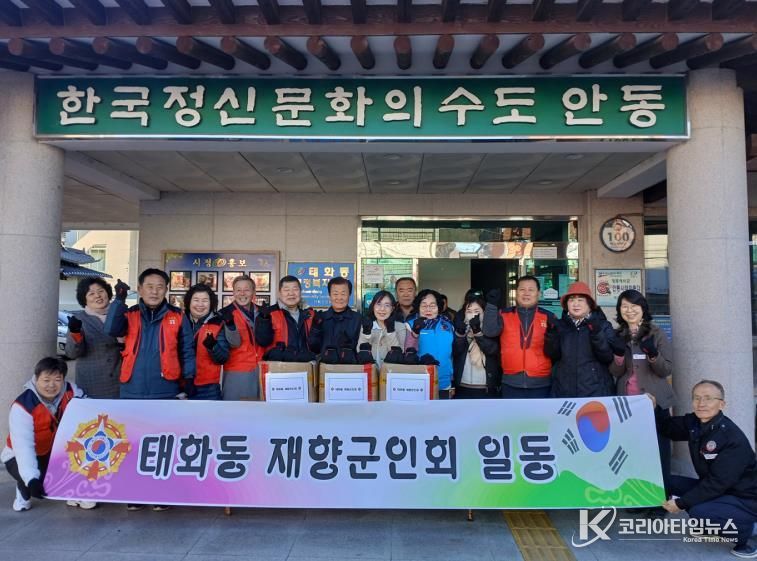코리아타임뉴스 노승선 기자 | 안동시 재향군인회와 여성재향군인회는 지난 1월 8일 태화동 행정복지센터를 방문해 면장갑 600켤레를 기부하며 지역사회 나눔 실천에 앞장섰다.