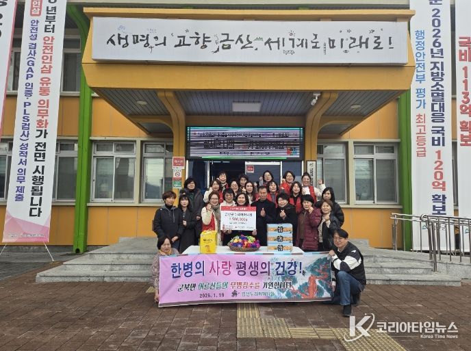 코리아타임뉴스 충남취재본부 | 금산군누리어머니회(회장 임예순)는 지난 19일 군북면 독거노인 등을 위해 150만 원 상당 요구르트, 복주머니 등을 기탁하며 희망2026 나눔캠페인에 동참했다.