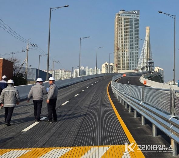 코리아타임뉴스 경북취재본부 | 포항시는 효자~상원 간 도로건설 공사의 핵심 구간인 해오름대교의 임시 개통을 앞두고 시민 안전과 원활한 차량 흐름을 위한 교통시스템 점검을 실시했다.