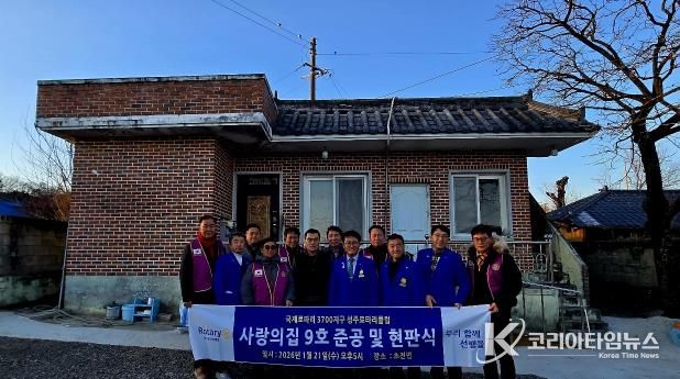 코리아타임뉴스 경북취재본부 | 국제로타리 3700지구 성주로타리 클럽은 1월 22일 성주군 초전면에서 ‘사랑의 집짓기 9호’ 준공 및 현판식을 개최했다.
