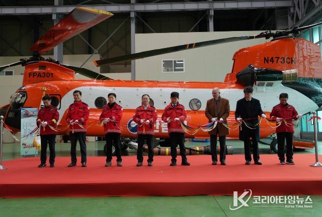 코리아타임뉴스 김태훈 기자 | 산림청은 산림항공본부에서 국내 최초 민수용 대형헬기 시누크 1대를 신규 도입하고 도입식을 개최했다고 23일 밝혔다.
