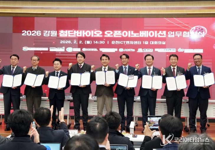코리아타임뉴스 김택호 기자 | 홍천군은 2월 2일, 강원특별자치도, 춘천시와 함께 춘천 ICT벤처 센터에서 「강원 첨단 바이오 오픈 이노베이션 프로그램」 업무협약식과 사업설명회를 개최하고, 올해부터 사업을 본격 확대 추진한다고 밝혔다.