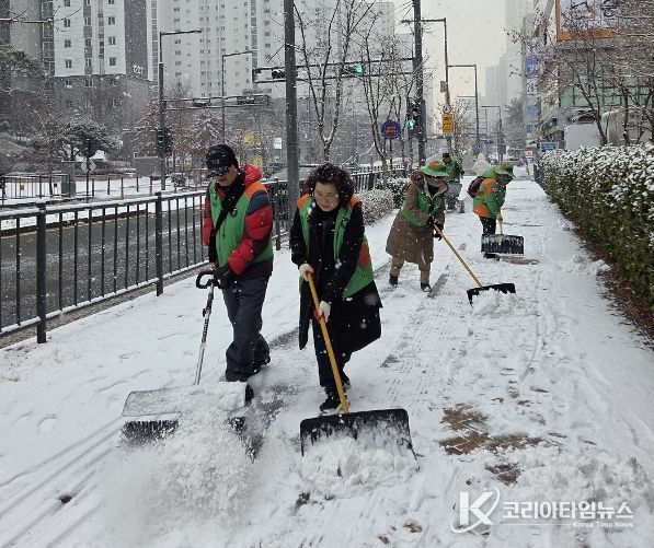 코리아타임뉴스 세종취재분부 | 세종특별자치시 아름동자율방재단이 대설주의보가 발효된 지난 2일 긴급 제설작업에 나서며 안전한 지역사회 만들기에 앞장섰다.