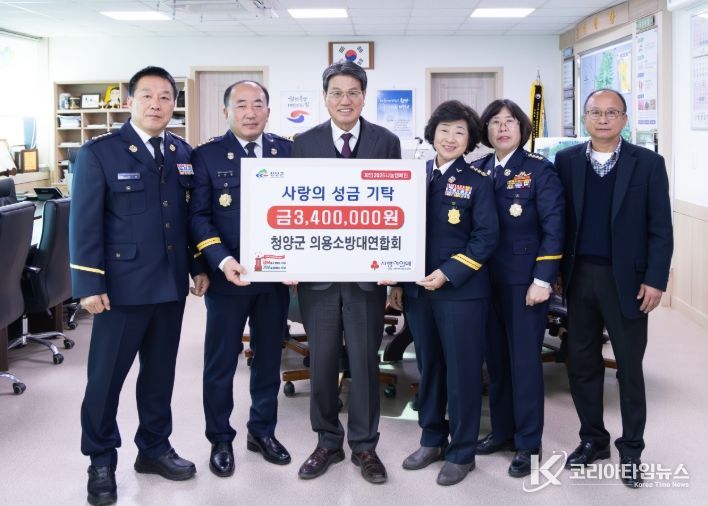 코리아타임뉴스 김택호 기자 | 청양군은 청양군 의용소방대연합회(회장 이선엽)가 관내 어려운 이웃을 돕기 위한 성금 340만 원을 기탁했다고 4일 밝혔다.