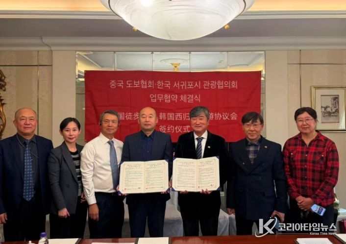 코리아타임뉴스 이아름 기자 | (사)서귀포시관광협의회는 중국걷기협회와 3일, 북경 베이징 구루 접견실에서 양 기관이 주관하는 유채꽃 국제걷기대회와 북경 걷기대회를 성공적으로 추진하기 위해 업무협약을 체결했다고 밝혔다.