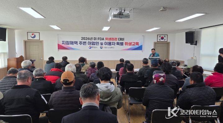 코리아타임뉴스 오영주 기자 | 통영시는 오는 3월 23일부터 4월 3일까지 예정된 미국 FDA 지정해역 위생점검을 대비해 패류 위생관리 실태 점검에 선제적으로 대응하고, 통영 수산물의 안전성을 국제적으로 인정받아 대미 수출에 차질이 없도록 하기 위해 ‘어업인 특별 위생교육’을 지난 4일 실시했다.