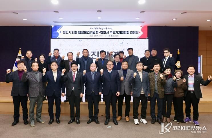 코리아타임뉴스 김택호 기자 | 천안시의회 행정보건위원회는 2월 5일 오전 10시30분 천안시 주민자치연합회와 간담회를 가졌다.